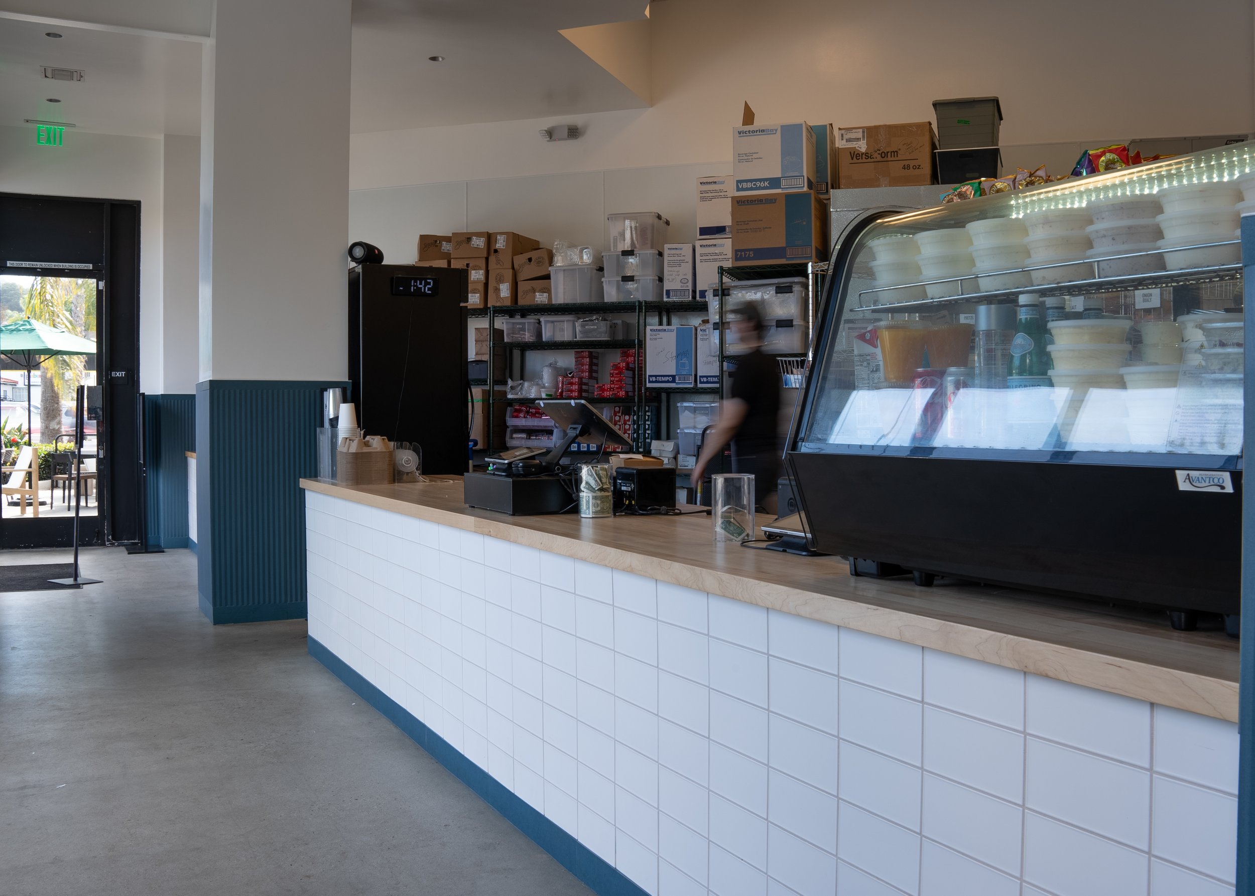 It was essential to keep returning customers at-ease and the staff efficient by utilizing a familiar floor plan, maximizing space, and considering foot traffic and flow. Customers can just as easily take away a bagel and juice on the run as they can sit and relax under the shade of Ventura Blvd.’s towering palms at an intimate outdoor bistro table.